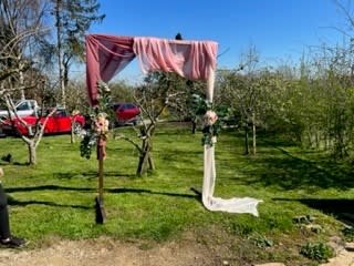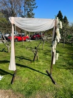 This Wooden Arch is beautiful for outdoor ceremonies, the entrance to the venue, in the gardens or over the main door the couple will walk through. Please contact us for the size you require as this comes in two sizes, if you require any materials and flowers and the colour you would require. Contact Yes Dear Price based on arch alone.