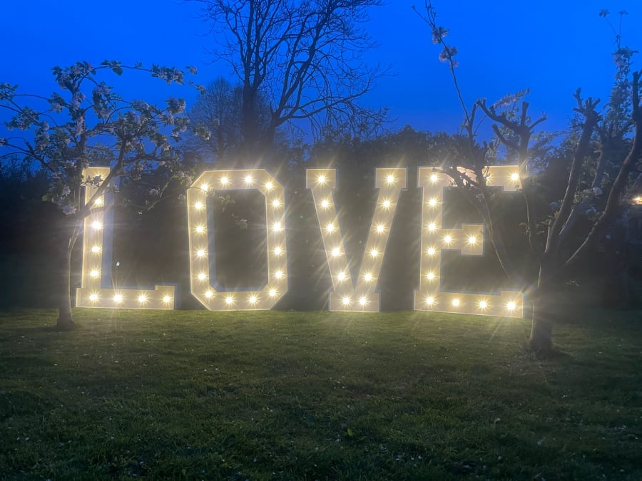 Make a huge statement just like your love for each other with these 5ft light up Love letters. These letters make for a bold statement either on the dance floor, entrance, outside and wonderful for photo's. These spectacular letters will amaze your guest's, and the bulbs don't get hot so are child friendly.