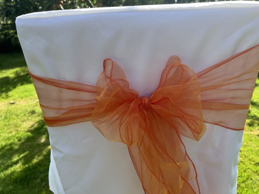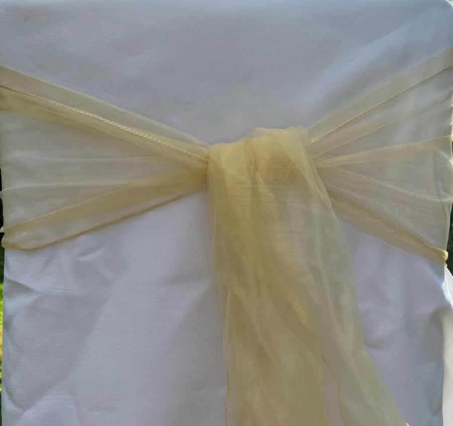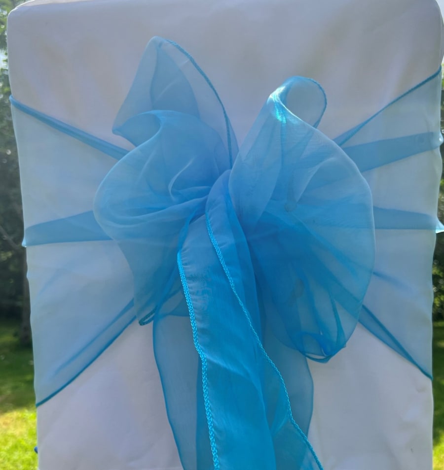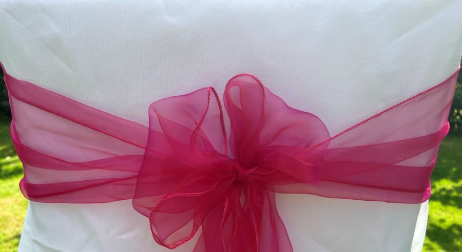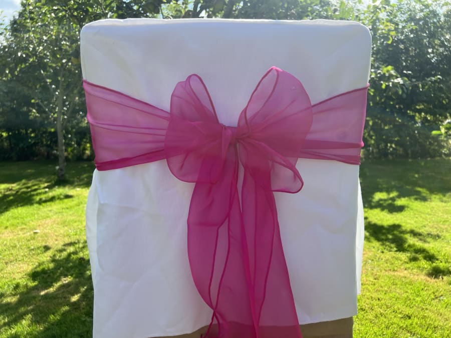 Chair Sashes and Table Runners available for rent, we can dress the chairs for you at an additional fee of .50p a chair, please contact us directly if you require a specific bow or flowers in the bow. Chair Hoods also available in a variety of colours. These Chair Sashes and Table Runners are in a Organza material a beautiful, luxurious colour to adorn any venue, please contact us if you require a sample of any colours. Contact Yes Dear